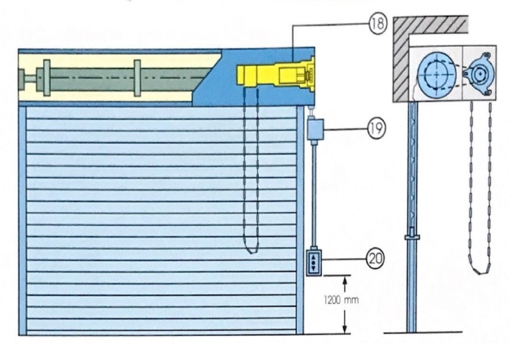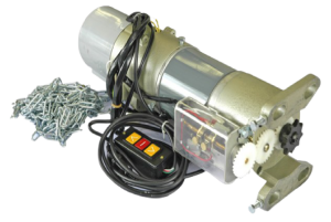 เป็นระบบที่ทันสมัยและมีประสิทธิภาพสูง เหมาะกับประตูเหล็กม้วนแบบบานเดี่ยวทุกขนาดใช้ได้กับประตูที่มีความกว้างเกินกว่า 9.00 m. และความสูงเกิน 6.00 m. ควบคุมการเปิด-ปิดด้วยรีโมทคอนโทรล ซึ่งสามารถใช้ได้ระยะห่างถึง 40 m. หากในกรณีที่ไฟฟ้าขัดข้อง สามารถใช่โซ่เปิดฉุกเฉินได้และเวลาปิดเพียงดึงเบรค ประตูก็ปิดลง